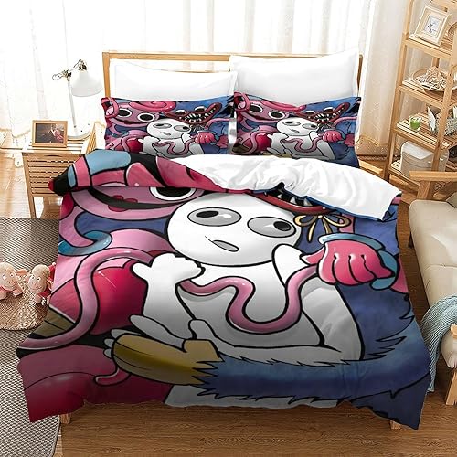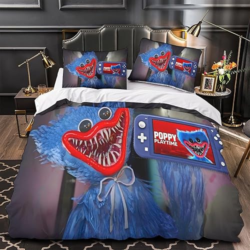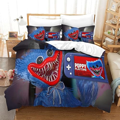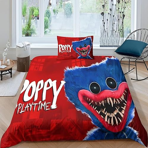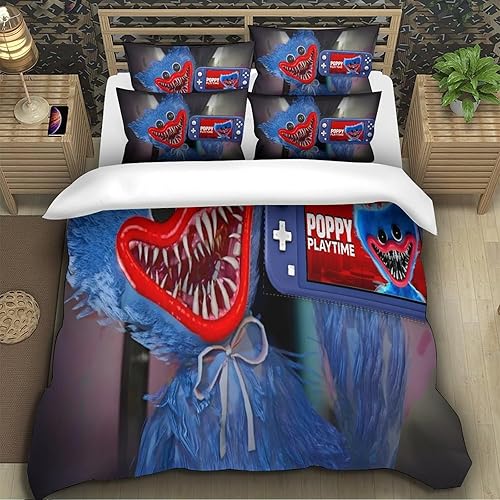 Poppy Playtime Housse De Couette Pour Adultes Et Enfants 3D Imprimé Horror Games Cartoon Housses De Couettes Microfibr Avec Taies Parure De Lit E Avec Fermeture À Glissière 2 Pièces Single(135x200cm)