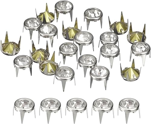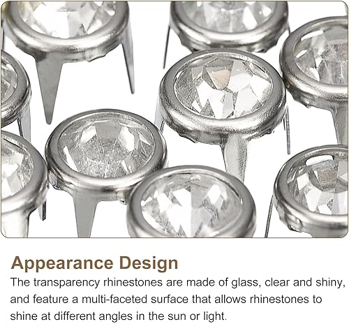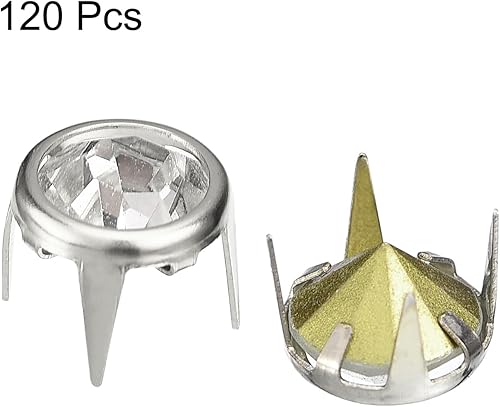 sourcing map 120 Pièces de Recharges de Clous Strass, Perles Griffes en Strass de 7mm, Rivets en Métal pour Décoration de Bricolage en Cuir, Fabrication de Sac, Chaussures, Argent Blanc