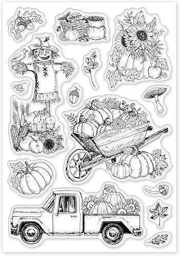 ORIGACH Tampons transparents pour la récolte d'automne Citrouille Tournesol Feuilles d'automne Tampons transparents en silicone pour l'album de scrapbooking DIY
