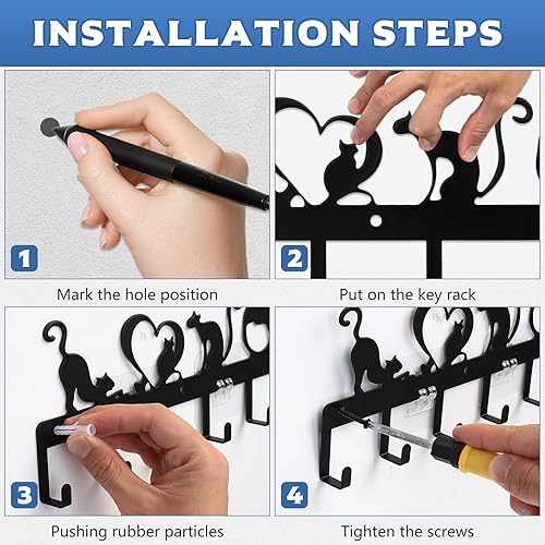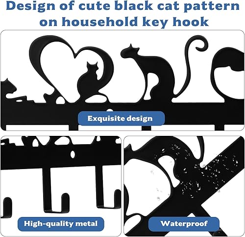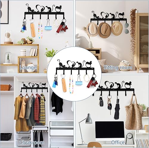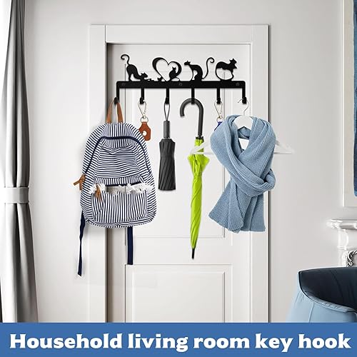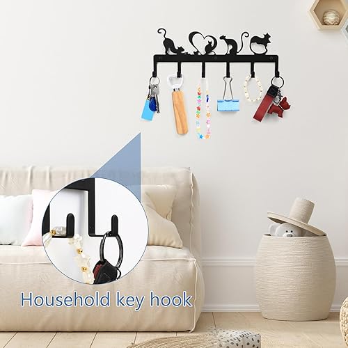 QJKEJI Porte Clef Mural, Porte Clé Mural, Accroche Clef Mural avec 6 Crochets, Accroche Clé Noir, Support Porte a Clefs Murale pour Décoration de Salle de Bain Entrée Cuisine Bureau (Chat Mignon)