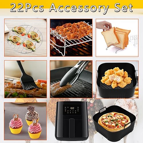 22Pcs Air Fryer Accessoires,Moule Silicone Air Fryer pour Philips 4,1L HD9200/HD9252/HD9255,Ensemble D'accessoires pour Friteuse à Air,Friteuse à Air Chaud Accessoires Plat pour Philips 4,1L