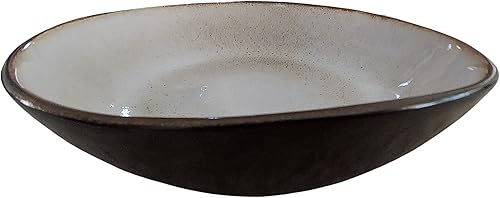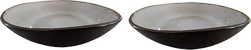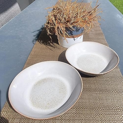 PintoCer - 2 assiettes creuses en grès, 23 cm, bol à soupe, pâte, salade ou céréales, couleur : extérieur noir intérieur beige