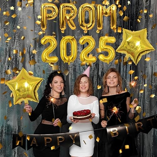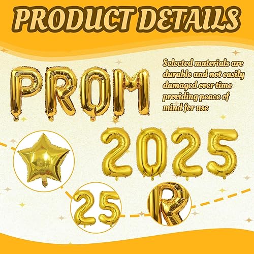 Décorations de bal 2025 - Bannière de ballons en aluminium - Kit de décoration de ballons pour intérieur et extérieur - Fournitures de fête d'anniversaire de mariage - Doré