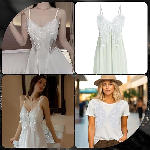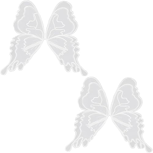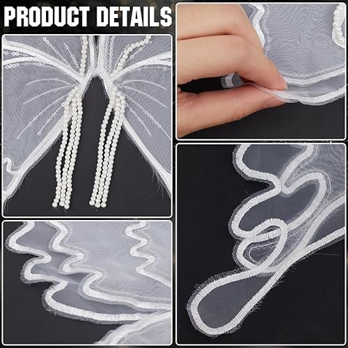 GORGECRAFT 2pcs Papillon Dentelle Applique Papillons Coudre Sur Patchs Perles Paillettes Polyester Coton Brodé Décoratif Costume Tissu Patch pour Robe de Mariée Vêtements Décor Couture Artisanat Blanc