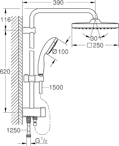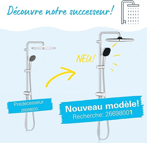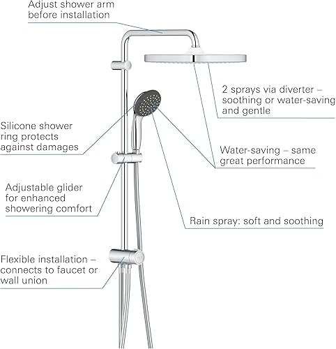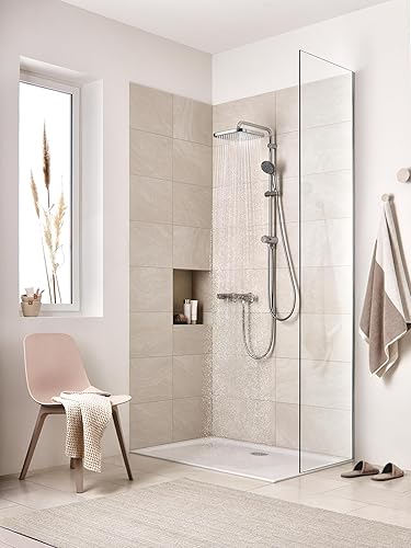 GROHE Colonne de Douche avec Inverseur manuel Vitalio Start 250, 50% d'économie d'eau et d'énergie, Tête de douche 250mm, Barre orientable, Pommeau de douche 1 jet, Chromé, 26698000, Import Allemagne