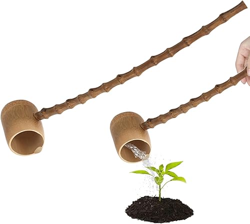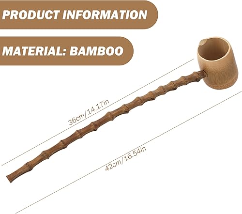 Louche en bois 16,5 pouces d'eau bambou avec une longue poignée de style oriental longue cuillère en bois à surfaces lisses en bambou pour servir le thé ou l'arrosage du jardin, une longue cuillère e