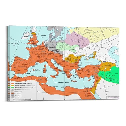 YBHF Poster de la carte de l'Empire romain 102-198 - Décoration murale rétro - Esthétique - Décoration pour chambre et bureau - 30 x 45 cm - Style cadre