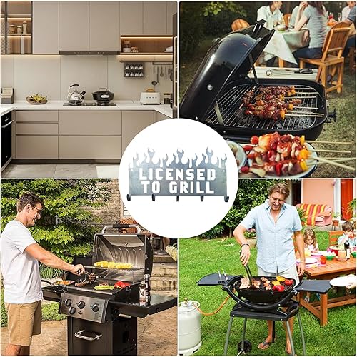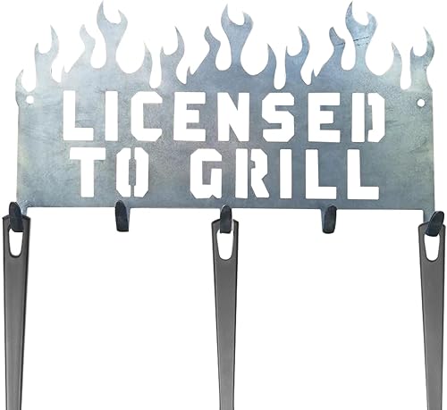 Etsy Porte-outils pour barbecue – Organisateur de cuisine extérieur personnalisé | Porte-couverts mural intérieur avec 5 crochets | Porte-couverts en métal avec logo pour barbecue et ustensiles de