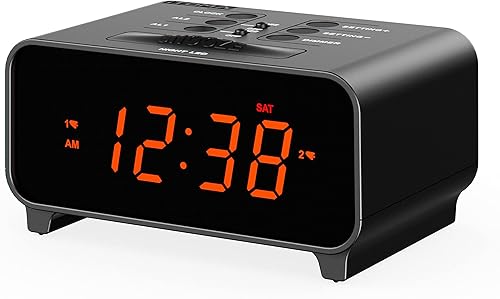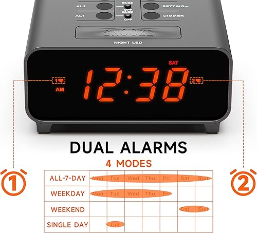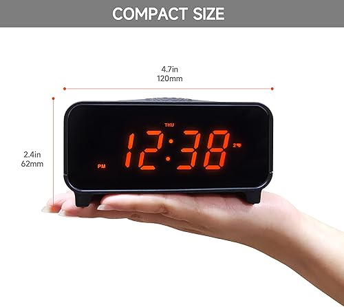 iTOMA Petit Réveil, Double Réveil avec 4 Modes d'alarme Hebdomadaires, Snooze,Gradateurs Automatiques et Manuels, 12/24 Heures, Veilleuse et Horloge à Affichage LED Orange pour Chambre 213