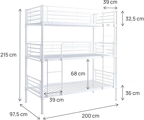 Habitat et Jardin Lit Triple superposé Metal Havin - 90 x 190 cm - Blanc