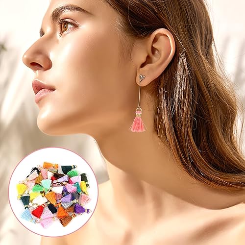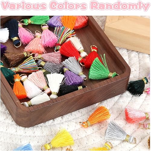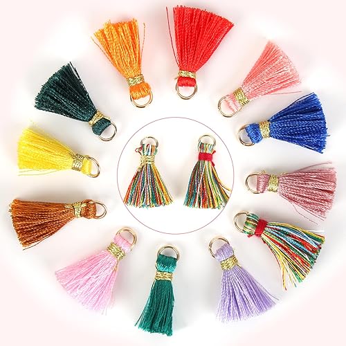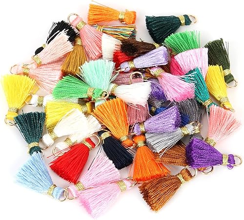 Joynine 50 Pièces Mini Glands Pendentifs, 2cm Glands Colorés, Tassels en Coton Fait Main, Petits Glands Pompoms Colorés, pour Bijoux DIY Boucles d'oreilles Artisanat, Bracelets, Marque-Pages