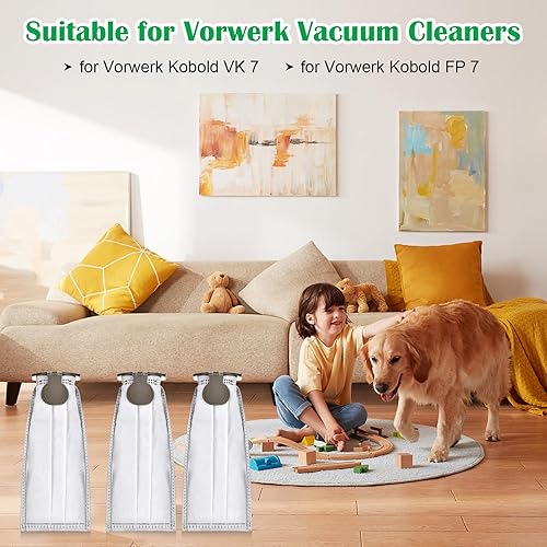 12 Sacs Aspirateur Microfibre pour Vorwerk Kobold VK7S VK7 FP7S FP7, Sac à Poussière de Rechange, Sac Aspirateur avec 2 Filtres Moteur et 1 Brosse de Nettoyage, Accessoires pour Aspirateurs