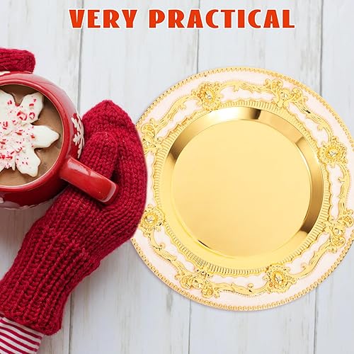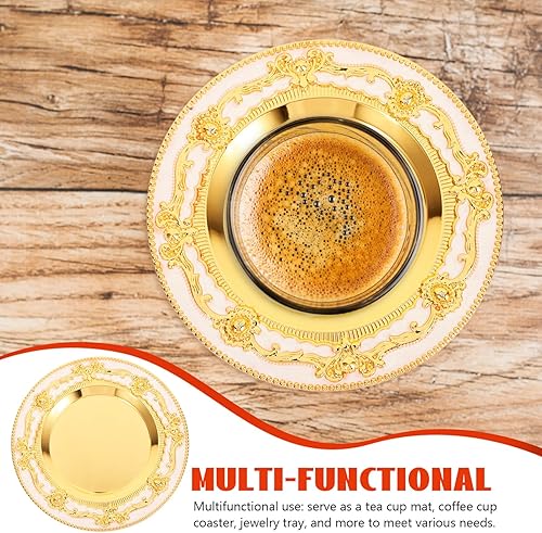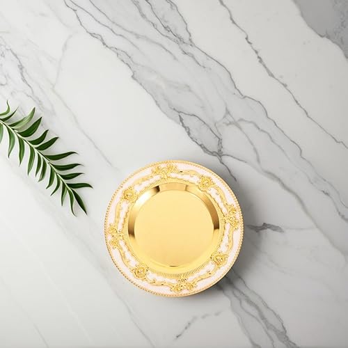 EXQUIMEUBLE Plateau Décoratif Rond Doré Vintage Pour Petite Rangement Bijoux Et Tasses À Café Plateau Multifonctionnel Pour Décoration De Table Et Accessoires