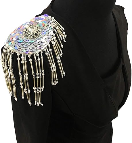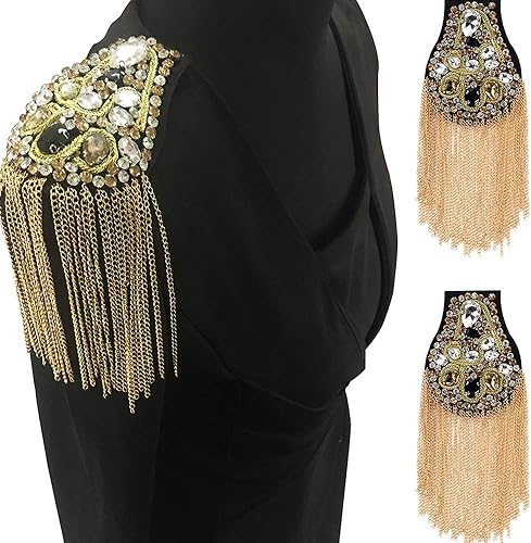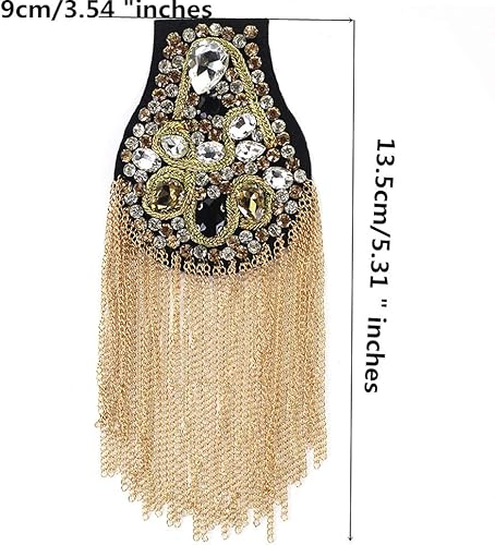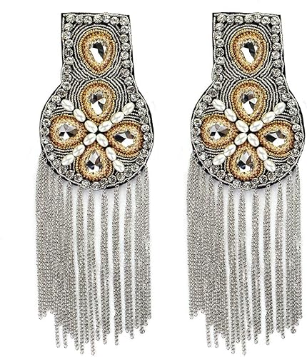 Lot de 2 écussons à pampilles, chaîne, épaule, perles, strass, épaulettes, appliques pour costume militaire, couture (I)