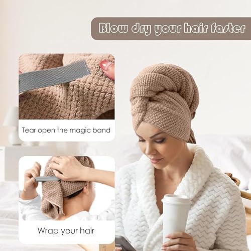 Grande Serviette Microfibre Cheveux longs, Serviette Cheveux Microfibre avec Bande élastique, Séchage Rapide Super Absorbant, 100 x 60 cm Serviette Cheveux, Microfiber Towel Hair