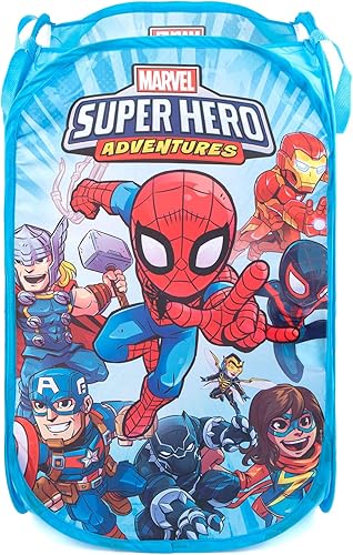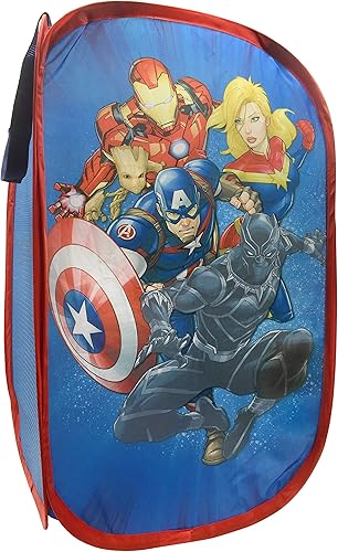 Jay Franco Marvel Avengers Blast Off Panier à linge pop-up – Avec Captain Marvel, Iron Man, Black Panther et Captain America – Panier à linge en maille avec poignées durables, 55,9 x 35,6 cm