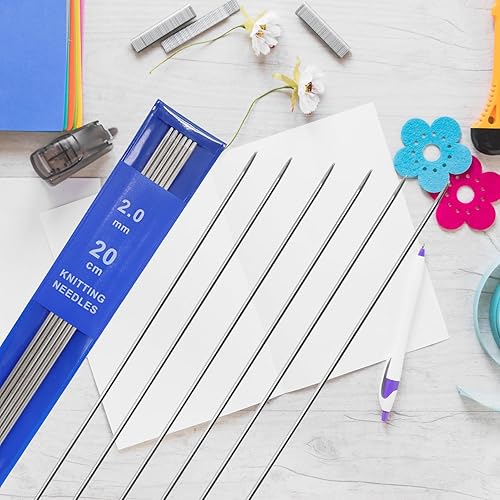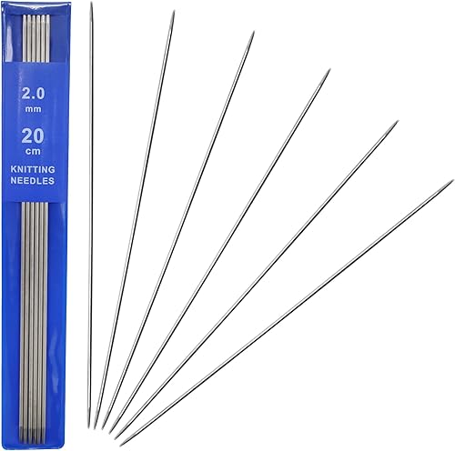 Lot de 6 aiguilles à tricoter de 2 mm, idéales pour le tricot et les débutants, lisses, solides et durables, jeu d'aiguilles à tricoter en acier inoxydable, chaussettes, écharpes, pulls pour animaux
