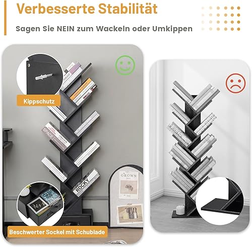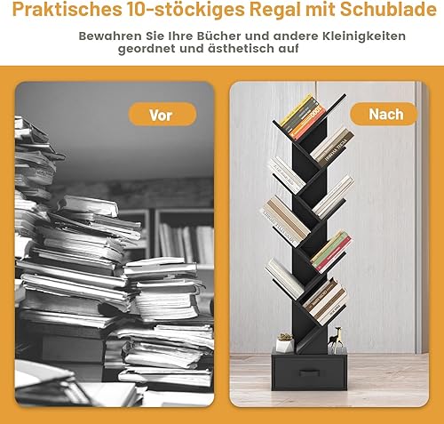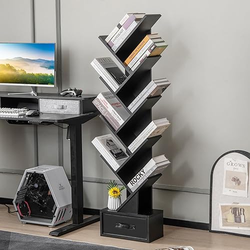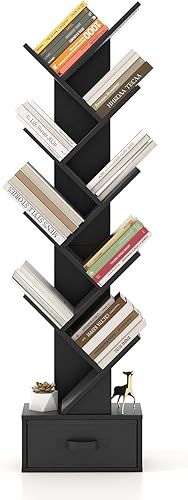 COSTWAY Bibliothèque avec tiroir à 8 étages, en Forme d'arbre, étagère pour CD et DVD, pour Chambre à Coucher, Salon et Bureau à Domicile, 38 x 21,5 x 149,5 cm (Noir)