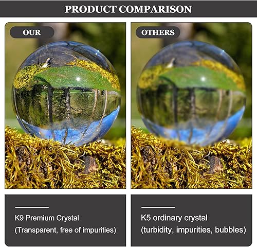 Boule en verre : boule de cristal K9 Boule transparente 80 mm Boule en verre Photographie Boule de cristal transparente avec base ronde en bois pour accessoires de photographie Boule de divination