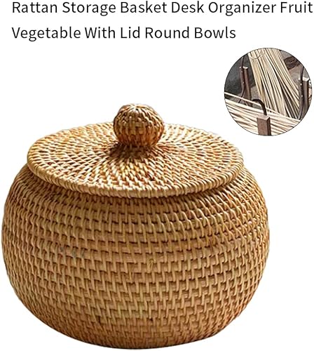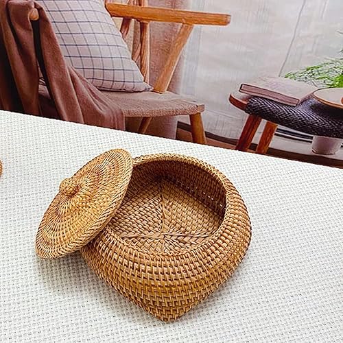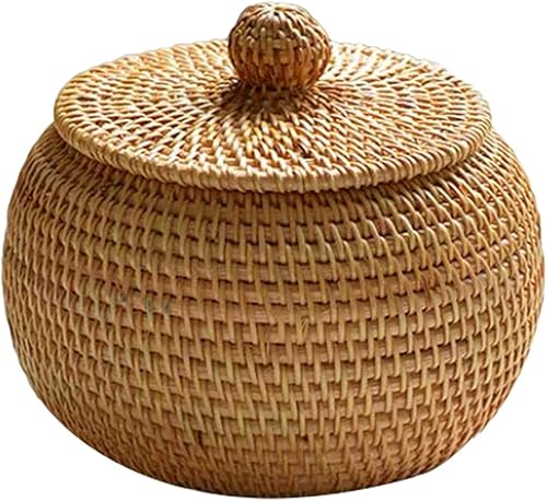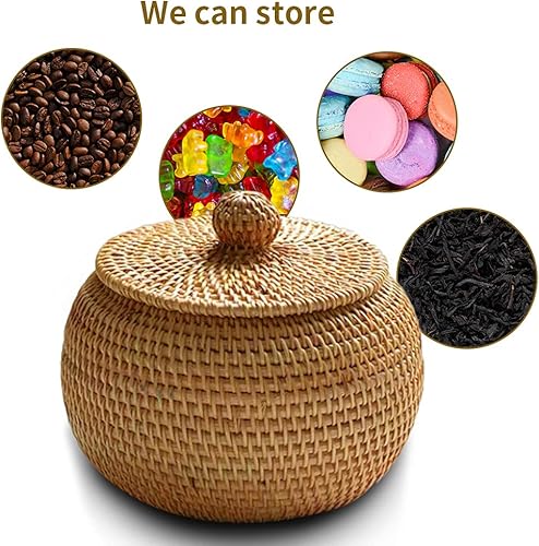 POHOVE Panier de Rangement en Osier avec Couvercle-Panier rotin Petite boîte en Osier-Tissées en Rotin Naturel pour Chambre Salon Bureau,15 x 11,9 cm