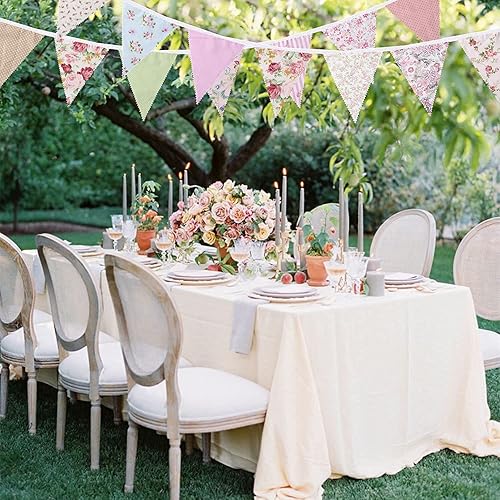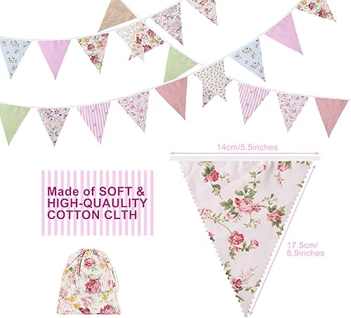 Mocturnity 40Ft Fabric Bunting, 42 pcs Bannière d'extérieur, Floral Vintage Coton Triangulaire Drapeau pour Jardin Anniversaire Fête
