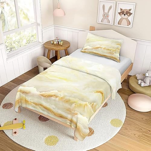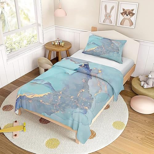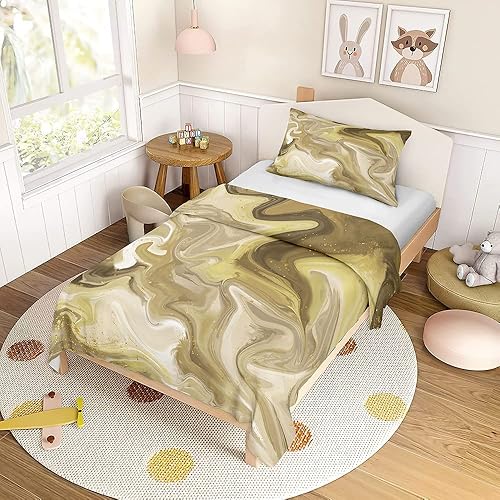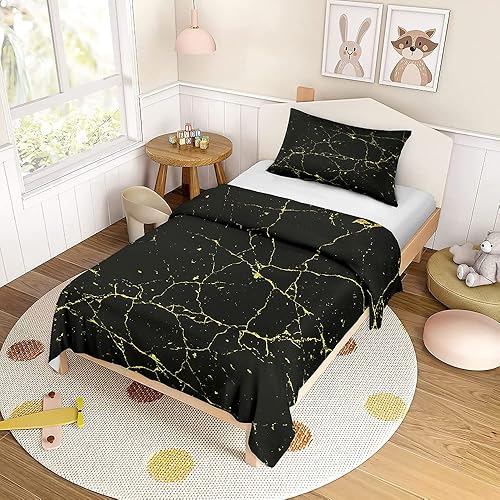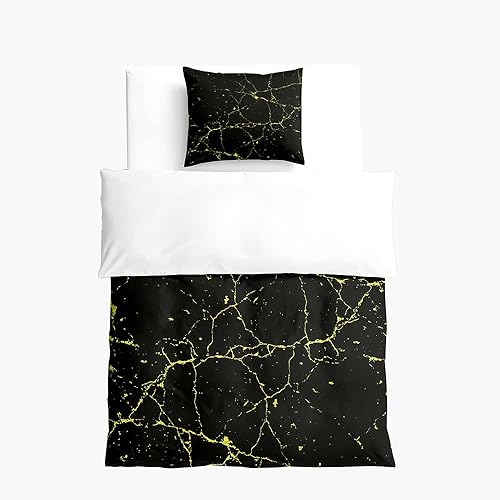 FANSU Parure de Lit pour Enfant Imprimé Marbre Moderne avec Housse de Couette et Taie d'oreiller, 1 Personne Ensemble de Literie en Microfibre pour Garçons et Filles (140x200cm,Noir)