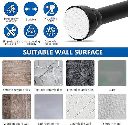 Tringle à rideau de douche extensible sans perçage, 100 à 130 cm, extensible sans perçage, tringle de douche télescopique pour rideau de cuisine, salle de bain