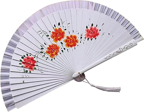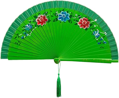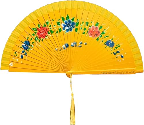 Duyeuau Éventail de danse espagnol à double motif de flamenco avec illustration florale, éventail pliable en soie