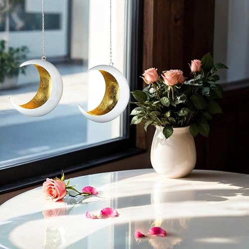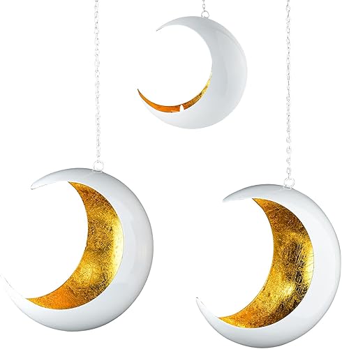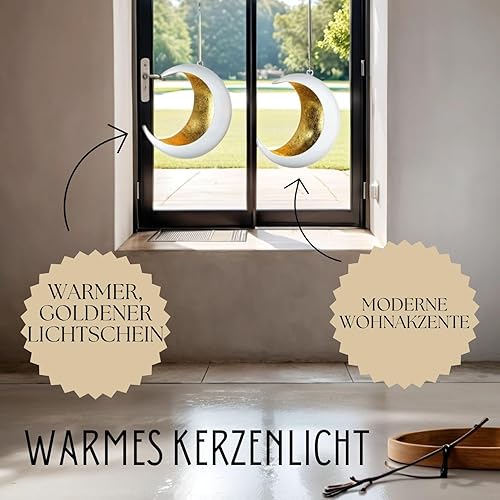 Marrakech Lot de 2 photophores décoratifs bohèmes esthétiques en métal 20 cm | Photophore blanc foncé doré comme décoration de salon et d'automne | Bougeoirs modernes pour bougies chauffe-plat