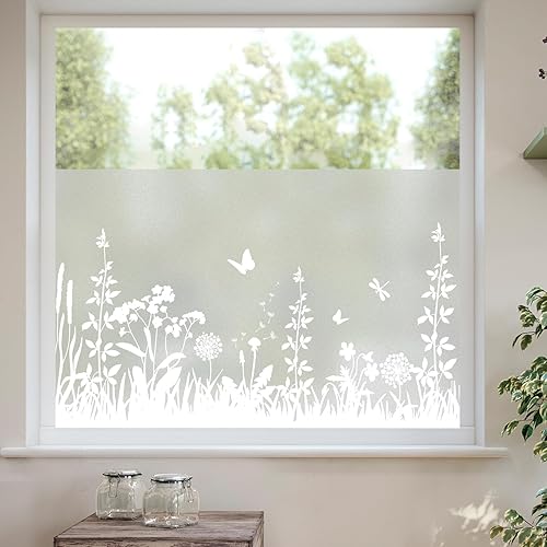 dktie Film d'intimité blanc pour fenêtre - Non adhésif et réutilisable - Décoration pour chambre (02, 44,5 x 200 cm)