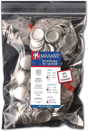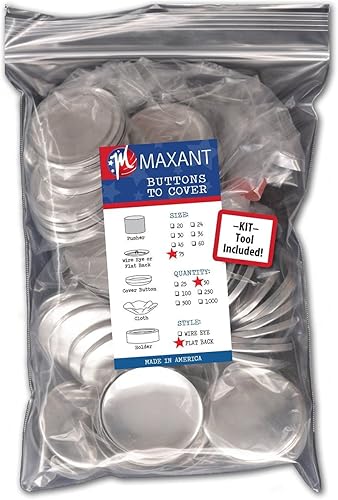 100 boutons à recouvrir pour customiser vos propres boutons à dos plat – dimension 30 (19mm) avec outil