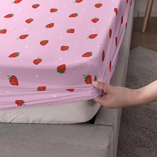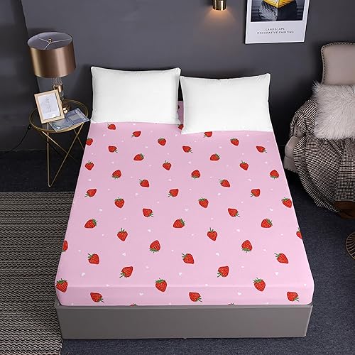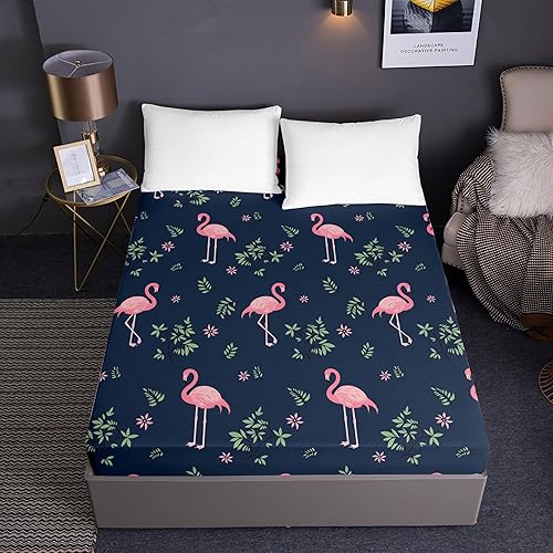 Lukery Drap Housse Bonnet 30 cm, Ajustable Housse Matelas 1/2 Personne, Drap de Lit Microfibre, Doux et Respirant Lavable en Machine (Oiseau Rose,90x190+30cm)