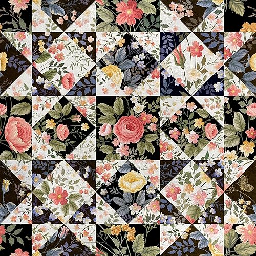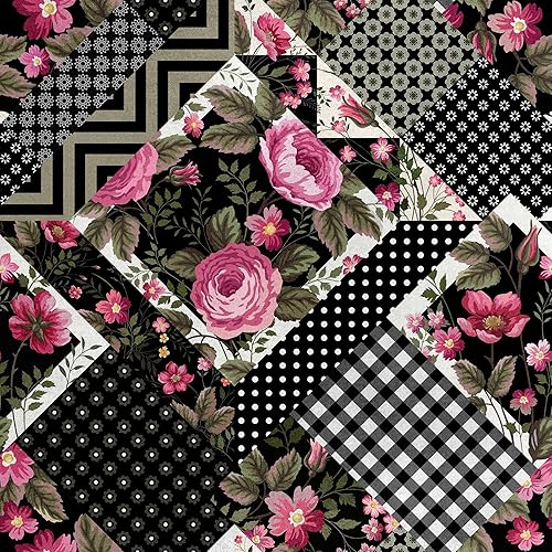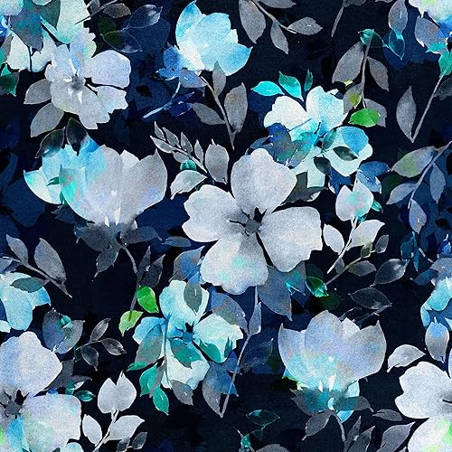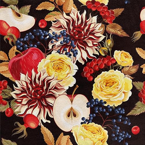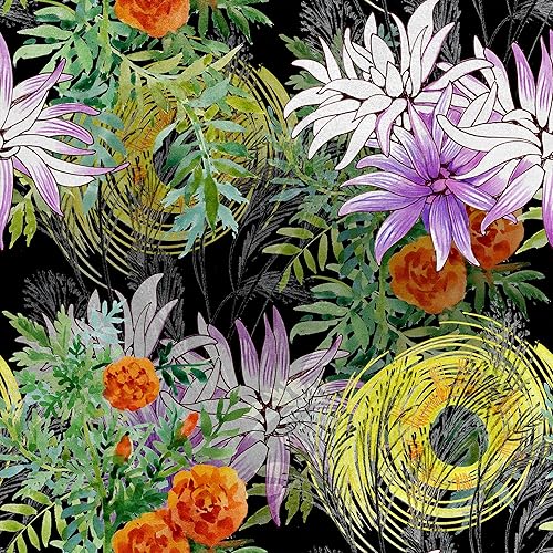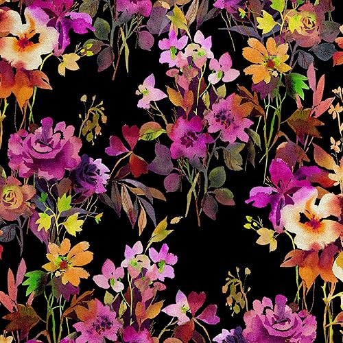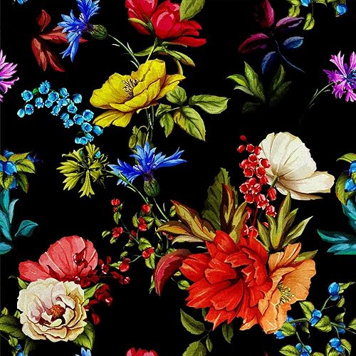 HEKO PANELS RDX171 Tissu en velours au mètre Tissu décoratif imprimé Tissu d'ameublement en velours polyester à coudre Imperméable Fleurs royales Noir Multicolore 140 x 100 cm