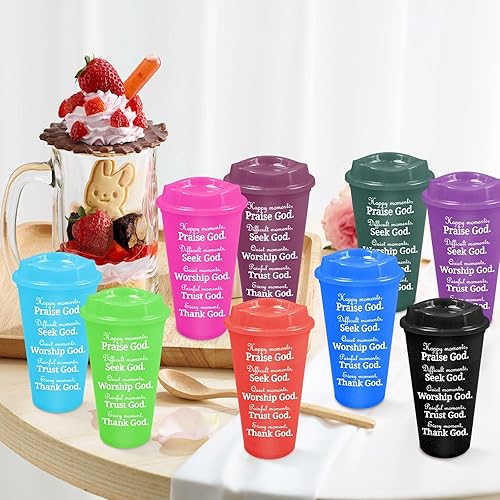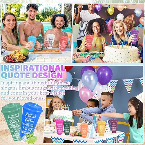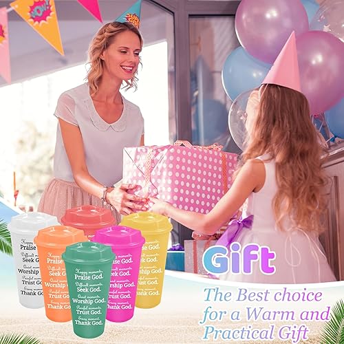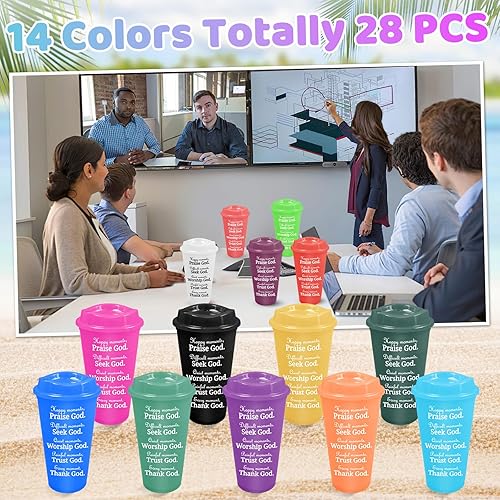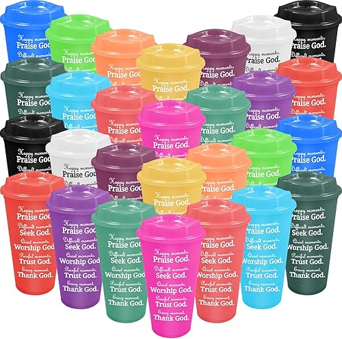 Kaxtde Lot de 28 tasses à café chrétiennes en vrac, 480 ml avec verset de la Bible, réutilisables avec couvercles pour anniversaire, Noël, Halloween