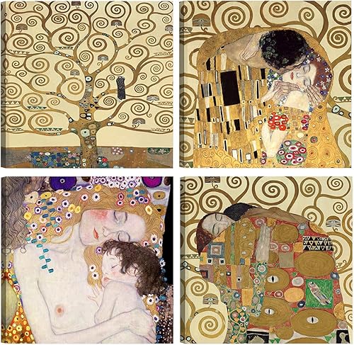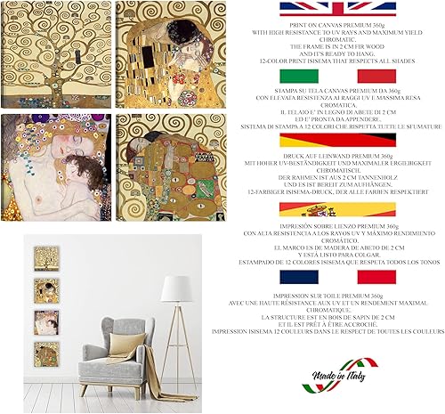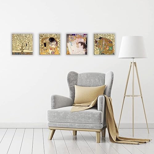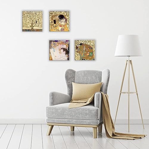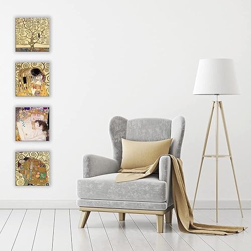 DìMò ART Gustav Klimt Lot de 4 tableaux modernes 30 x 30 cm cadauno Impression sur toile pour décoration d'art classique pour cuisine, chambre à coucher, salon, bar, bureau, restaurant
