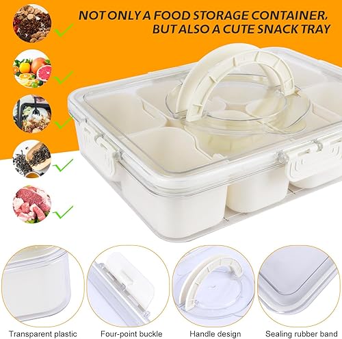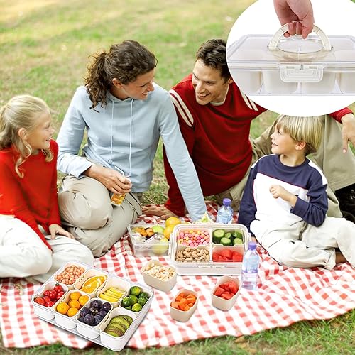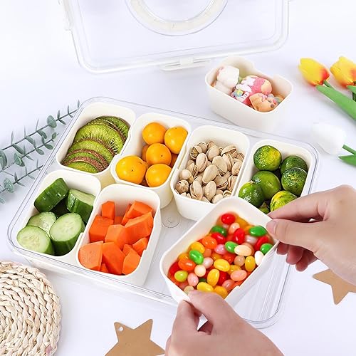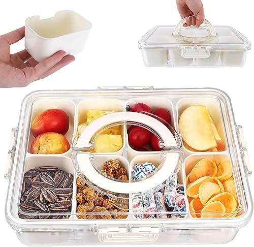 ENUTROF Plateau à Collation avec Couvercle et Poignée Plateau de Service Divisé Plateau Bol Assiettes à Collation avec 8 Compartiments Boîte de Rangement pour Collations
