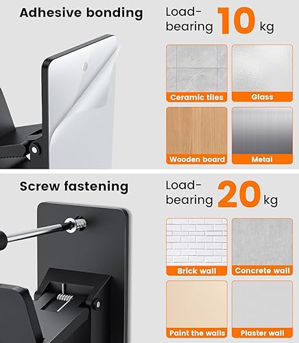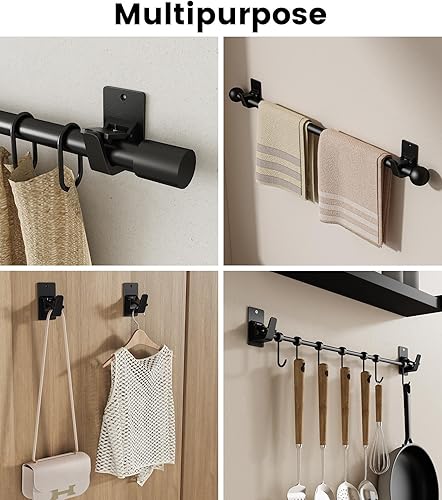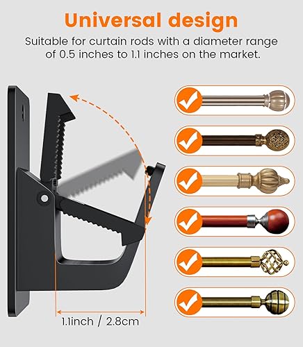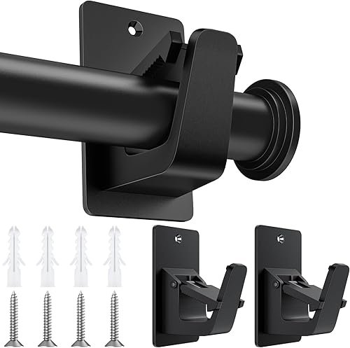 2 Paires Support Tringle Rideaux auto Sans Percage, Réglables Supports de tringle à Rideaux, Convient à la Plupart des Tringles à Rideaux de Salle de Bain, de Salon et de Chambre, Noir