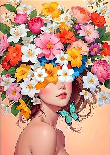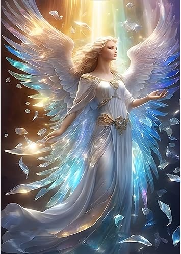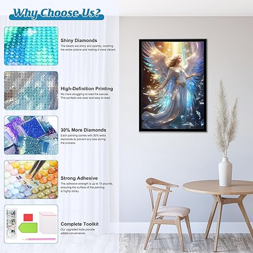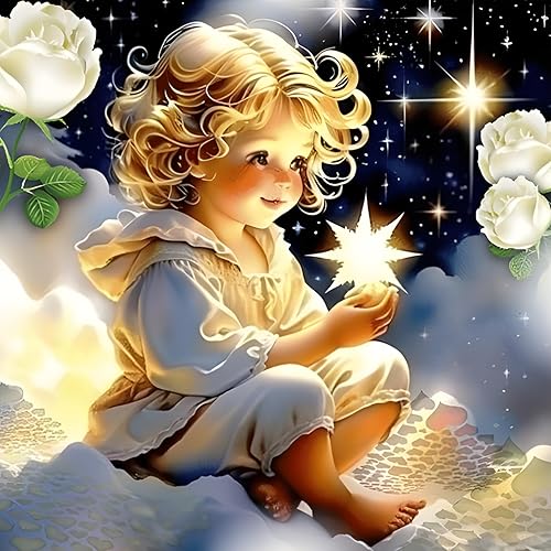 Bowetile 5D Bel Ange Diamond Painting, Kit Complet DIY Mignon Ange Diamant Painting, Peinture Diamant Adulte Fleur, Point de Croix Strass Cristal Nuage Pour Décoration Murale 30x30 cm