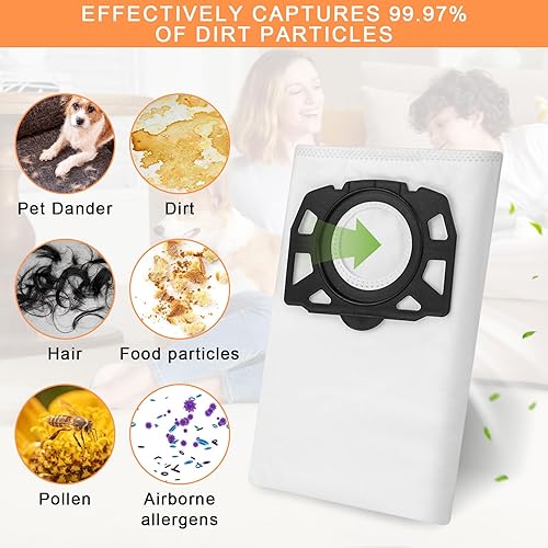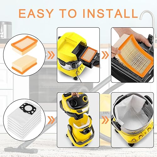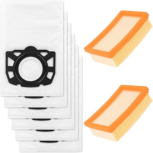 8 Pièces Accessoires pour Aspirateur, 6 Sac Aspirateur, 2 Filtre, pour Karcher WD4 WD5 WD6 MV4 MV5 MV6 WD5P WD6P