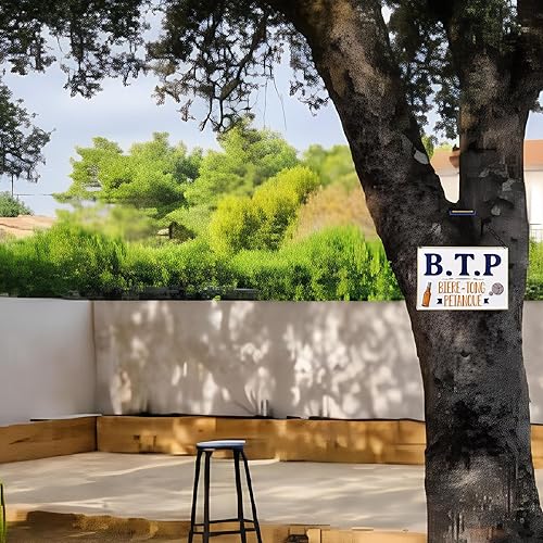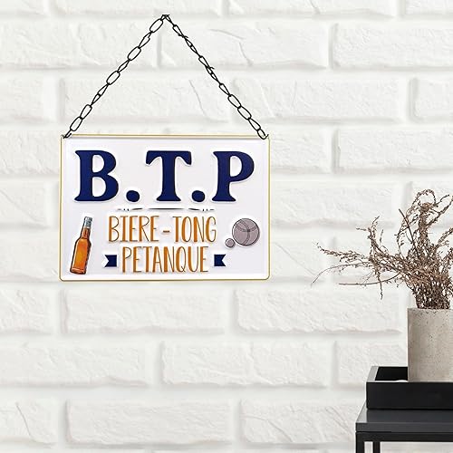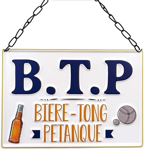 STC Plaque en métal B.T.P. - bière Tong et pétanque