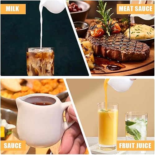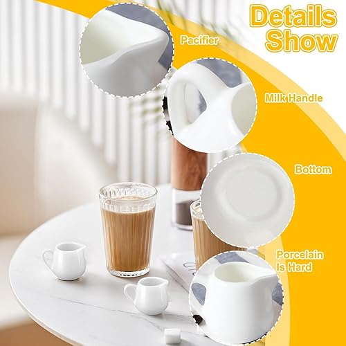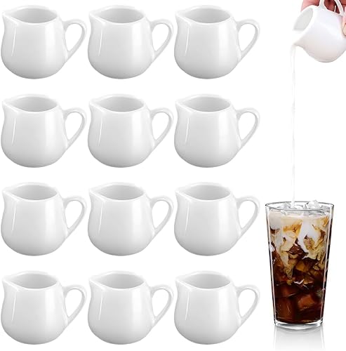 Rppiup Lot de 12 petits pots à lait en céramique blanche de 50 ml avec poignée, petit pot à sauce réutilisable, serveur de sirop en porcelaine (avec poignée)