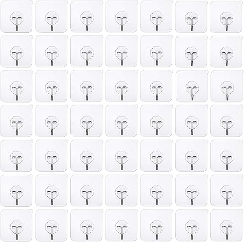 Inpion lot de 50 Crochets adhésifs 22lb/10kg Max Heavy Duty Transparent réutilisable Crochet mural à ongles gratuit, imperméable et pour de salle de bain, cuisine, porte de mur au plafond (50 HOOK)