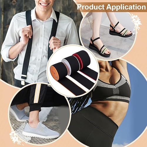 BENECREAT Bande Élastique Plate de 5.49 m Bande Élastique en Nylon 40mm 3 couleurs Large Antidérapante pour Bricolage Couture Artisanat Ceinture Short de Sport