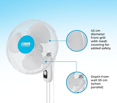 Ram Ventilateur Mural 08–355–295-400 mm, 3 Vitesses, Blanc