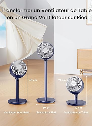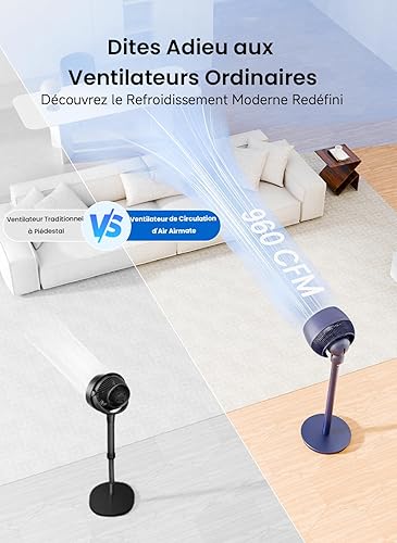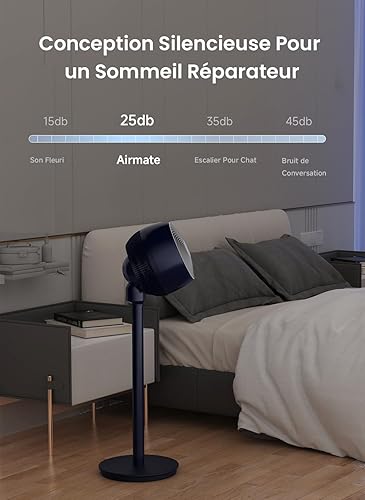 Airmate Ventilateur Silencieux, Pale de Ventilateur de 9', Ventilateur sur Pied à 12 Vitesses, 1600m³/h Super Flux d'air, Trois Hauteurs Réglables, Ventilateur Telecommande, Minuterie de 12 h