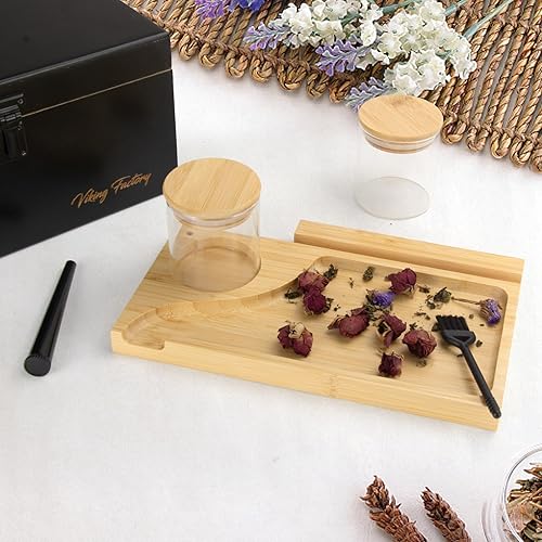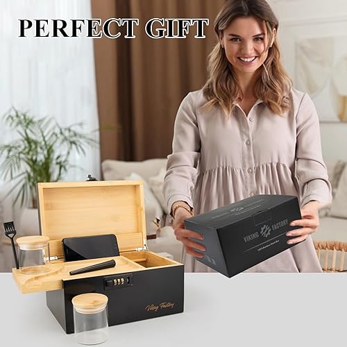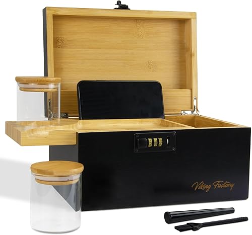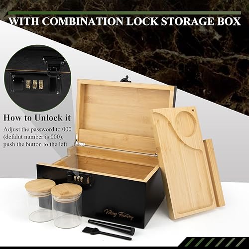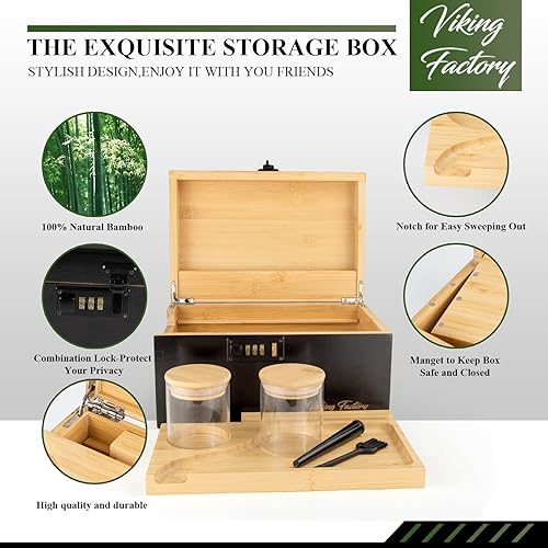 Viking Factory Grand Boîte en bambou avec serrure à combinaison, Boîte décorative pour la maison,Plateau amovible de qualité supérieure et tous les accessoires(27 * 18 * 15CM Noir)