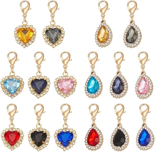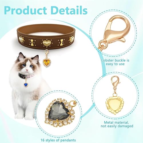 WEBEEDY 16 Styles de Pendentifs de Collier pour Chat Chien,Charms en forme de coeur et de goutte d'eau avec fermoirs Lobster,Charms à clipser pour les petits animaux de compagnie pour Porte-clés DIY