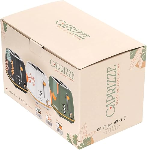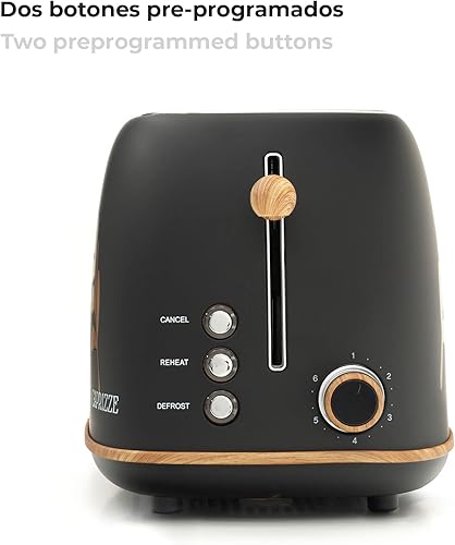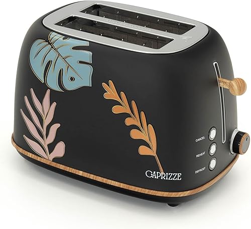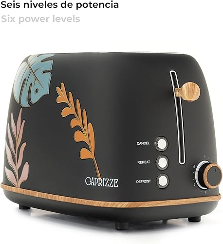 Grille Pain Caprizze Kaito avec Double Fente Extra Large 6 Niveaux de Grill Décoration Florale et Effet Bois Noir Mat