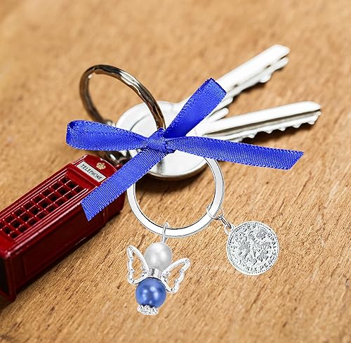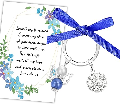 MKISHINE Quelque chose de bleu pour future mariée sur les cadeaux de mariage, bouquet d'ange de la part de maman, papa, grand-mère, sœur, amis, pièce de monnaie de six pence de la mariée avec carte de