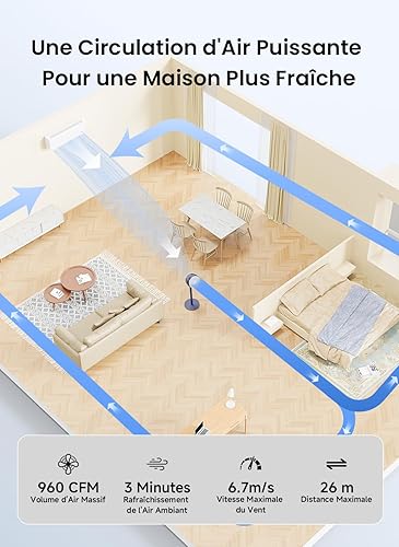 VonHaus Ventilateur Colonne - Ventilateur sur Pied - Climatiseur Mobile de 87 cm avec Minuterie, Télécommande, 3 Vitesses de Brise – Pour Chambre, Pièces Familiales - Garantie de 2 Ans